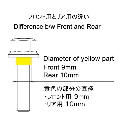 This product is designed to fit the end width of the frame (front 9mm/rear 10mm), and the shoulder part where the end metal fittings come into contact is 9mm in diameter for the front and 10mm in diameter for the rear.